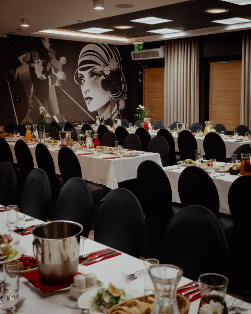Oferujemy przestrzeń, która sprawdza się zarówno podczas rodzinnych przyjęć, jak i spotkań z przyjaciółmi. Nowoczesne wnętrza, wygodna sala i możliwość dopasowania układu stołów sprawiają, że każde wydarzenie ma swój własny klimat.